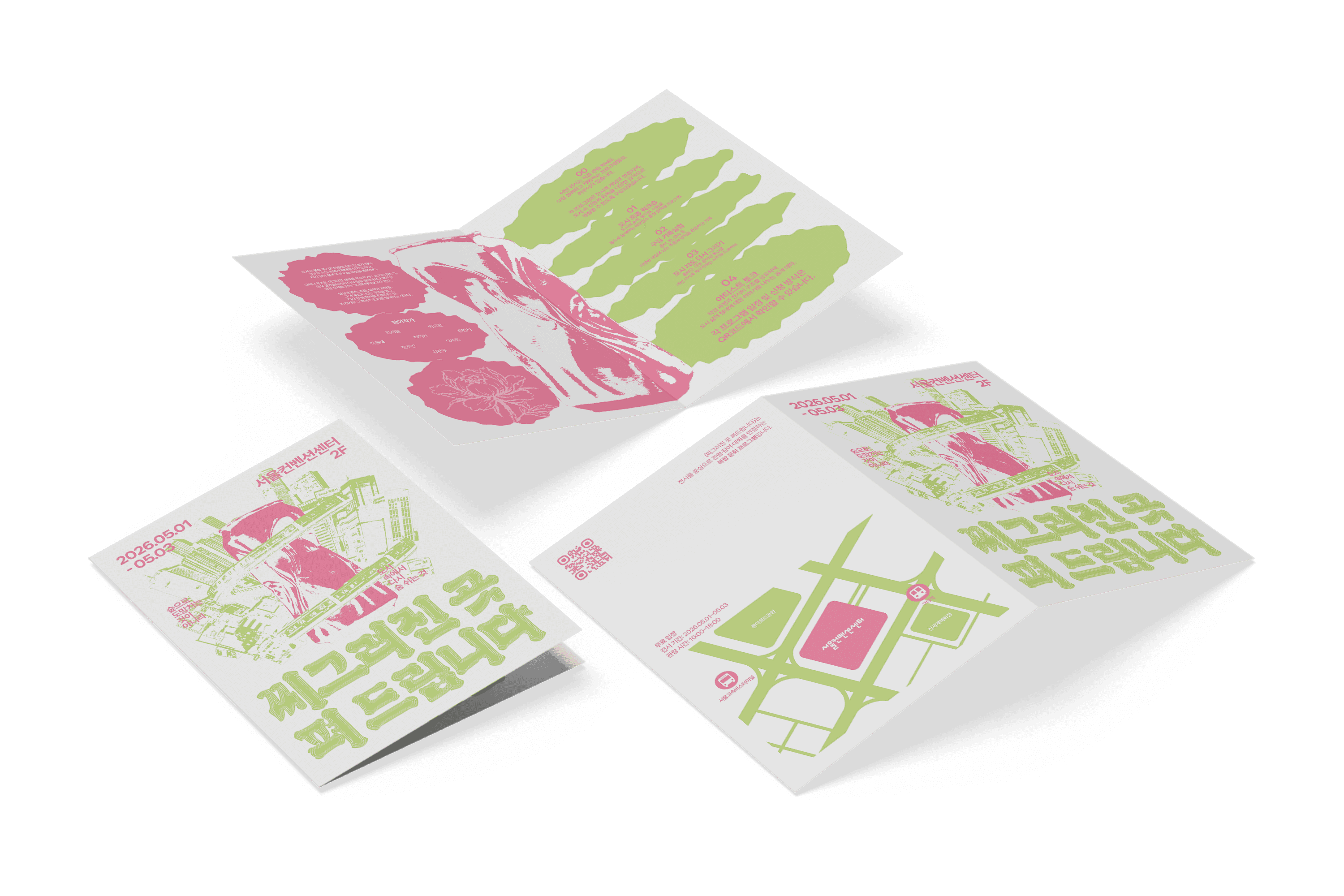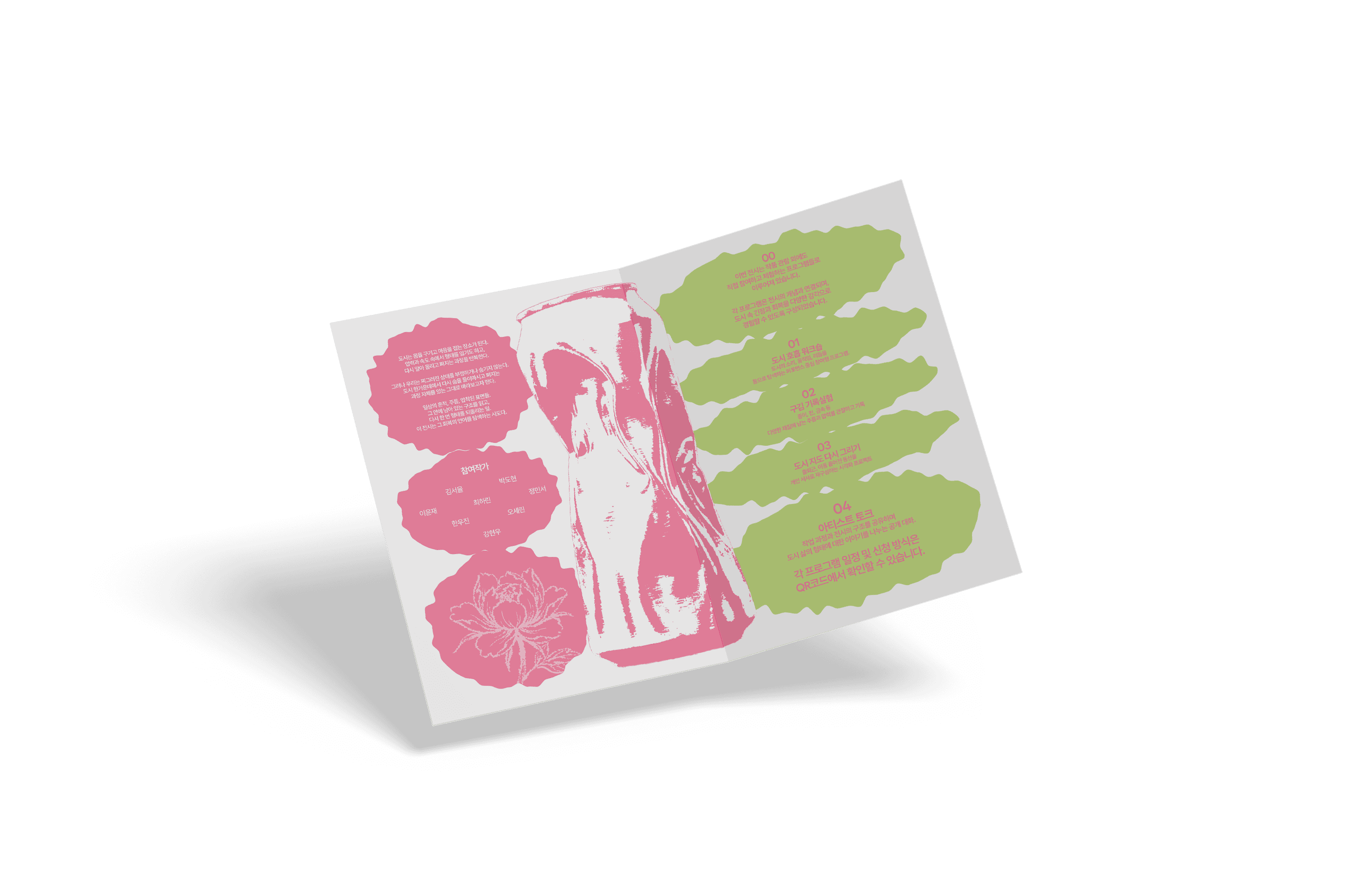 가상의 문화 프로그램을 위한 메인 키비주얼을 기획·디자인했으며, 포스터·리플릿·스티커 등 다양한 매체 전반에 일관된 비주얼 언어를 적용하여 통합 브랜드 아이덴티티를 확립했습니다.